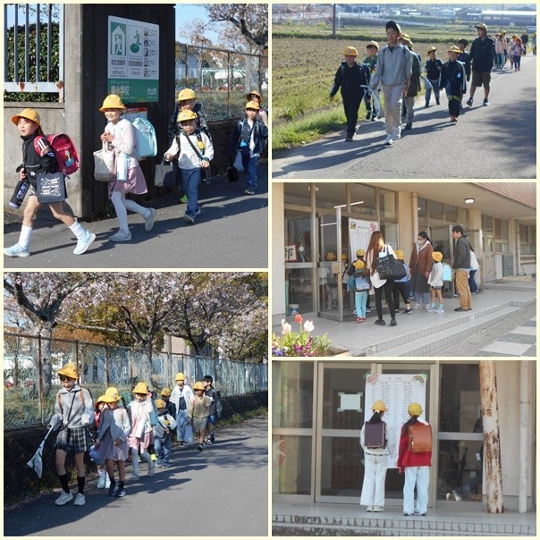 元気に帰りの挨拶をして一斉下校です。天気もよく、桜も咲き始めています。4月は新一年生が加わります。みんなでサポートお願いしますね。