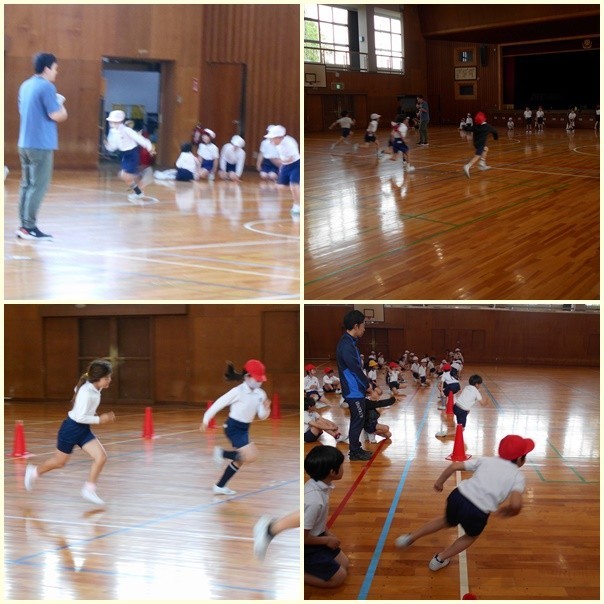 気候もよく、外で元気に遊んでいる子がたくさんいます。遊具で遊んだり、ボールで遊んだり、おにごっごしたりと楽しそうです。新しくできたお友達と遊んでいる子や通学班の上級生と遊んでいる子などさまざまです。