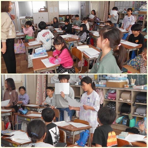 ボーリングゲームをするときの遊び方の説明を書いて発表していました。どのようにすると楽しめるかをそれぞれ考えていました。普段しゃべっていることばを正しく文にして伝えるのはちがいますね。