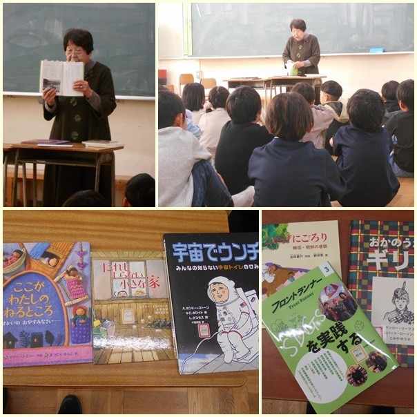今朝は、どんぐり文庫の古川先生によるブックトークが行われました。いくつか選書していただき、それぞれどんなお話なのか聞きました。自分の興味がもてる本から手に取って読んでみるのもいいですね。