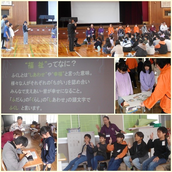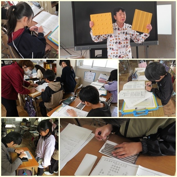 社会福祉協議会のボランティアの皆様にご協力いただき、福祉実践教室を行いました。全体で開講式を行った後、点字、車椅子、ガイドヘルプ、手話の4つのグループに分かれて、実際に体験もさせていただきながら学習をしました。実際にお話を聞いてみると、外から見てるだけでは分からないことがたくさんあり、メモもしっかり取りながら真剣に聞いていました。ボランティアの方には、子どもたちのためにたくさんの準備をしていただき、本当にありがたいです。4年生のみなさんは、今日学んだこと、感じたことを大切にしましょうね。