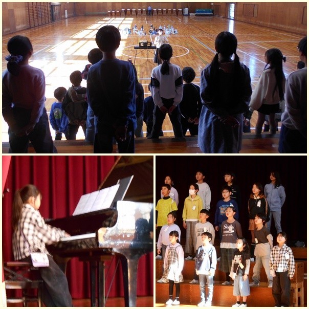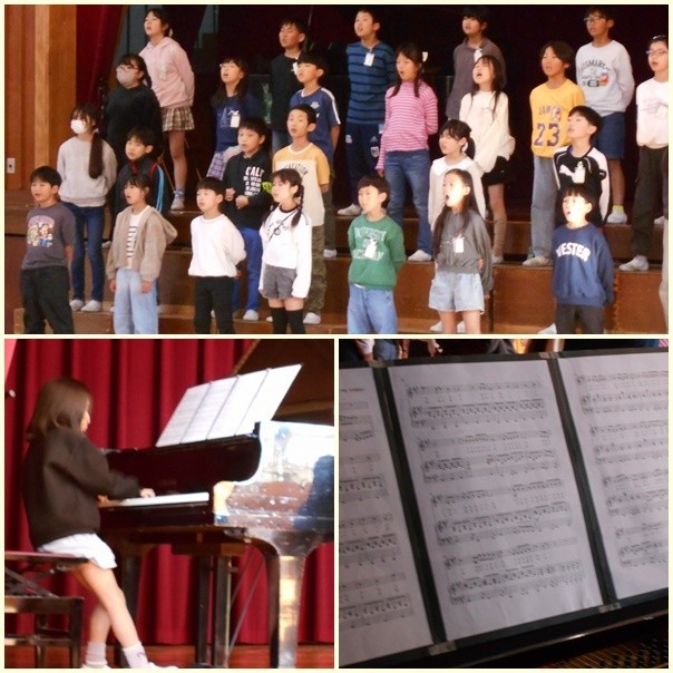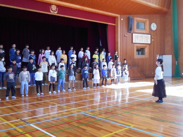 体育館で、全体で合わせる練習を行っています。いよいよ今週末に控えた音楽会に向けて、学年の心をそろえてがんばっていました。当日の会場の大きさが気になっている様子でしたが、それはリハーサルで確認ですね。あと、3日でできることをしっかりやって臨めば大丈夫です。4年生を東小みんなで応援しています。