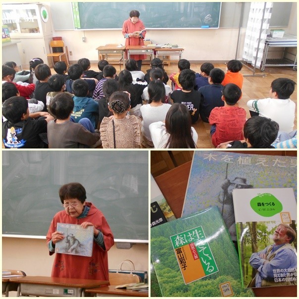 5年生を対象に、どんぐり文庫の古川先生によるブックトークが行われました。森をテーマにたくさんの本を紹介していただきました。