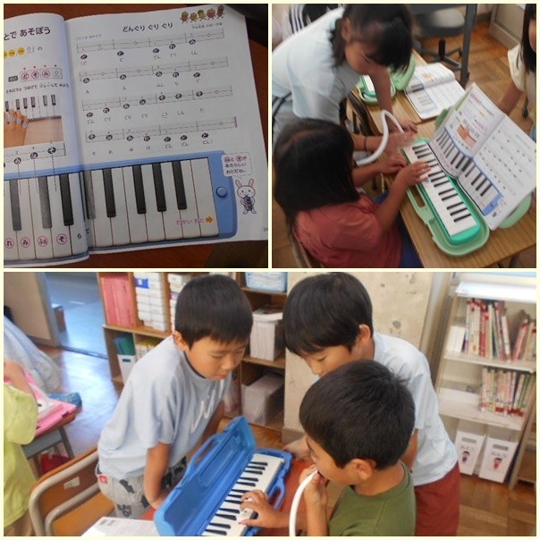 『どんぐり ぐりぐり』を鍵盤ハーモニカで練習していました。友達と教え合ったり、上手に弾くことができているか聞きあったりしています。楽譜を暗記して何も見ないで弾いている子もいました。たくさん練習して覚えたのでしょうね。