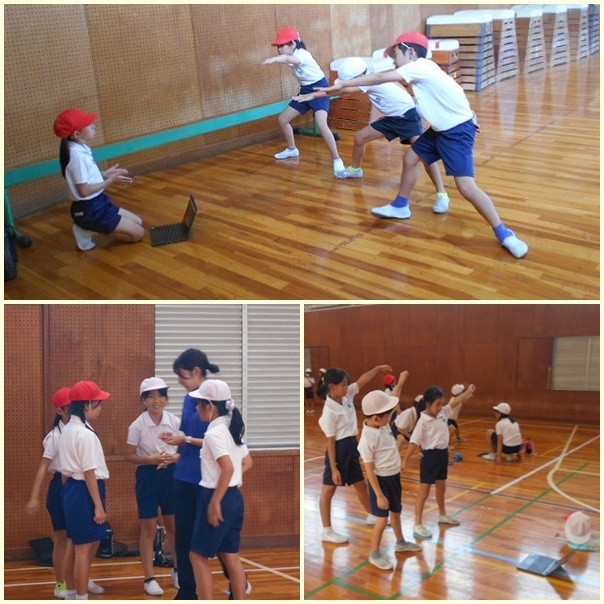 ソーランの練習です。先生ではなく、ミニ先生を中心にタブレットの映像も見ながら、グループで演技の練習を進めていました。もっと手を伸ばすといい、膝をしっかり曲げるとかっこいいなど、大事なポイントを押さえて練習に取り組んでいました。全員そろったらきっと素敵な演舞が見られることでしょう。