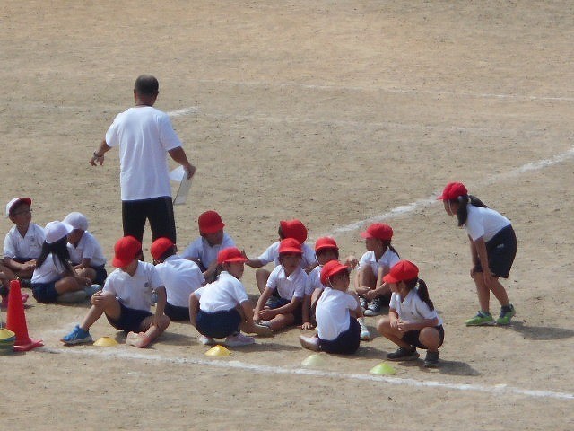 今月25日(土)の校内運動会に向けて、応援練習が始まりました。応援団が各教室へ出向いて応援の仕方を説明し、実際にみんなでやってみました。どの教室も初日から大きな声で盛り上がっていました。赤組、白組、ともにがんばってくださいね!運動場での練習もラインが引かれ、だんだん本番に近い形での練習となりますね。