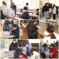 テッシュケース作りをしていました。ミシンやアイロンはこれまで習った技能を生かし、糸の始末もていねいに行います。ミシンで縫い終わると、アイロンで簡単に付けられるアップリケ作りに取り組んでいました。オリ...