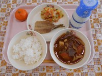 【献立】・ご飯・いわしの蒲焼き・ゆずと白菜の和風和え・鬼よけ汁・みかん・牛乳 今日は名古屋経済大学の学生さんが考案したメニューです。もちろん、「節分」がテーマです。冬が旬の野菜と果物を使って体を元気に...