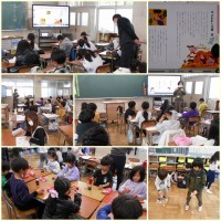 授業づくりコーディネーターによる研究授業を行いました。ペアで答えを話し合っています。元気よく挙手をして、前に出て発表する場面もありました。さるの絵を見ながらヒントにして、楽しく答えを見つけている児童...