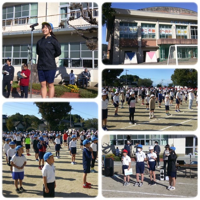 秋晴れのもと、ふれあい運動会の予行練習をしました。