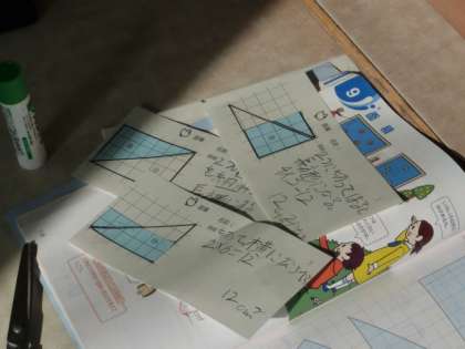 4年生 5年生の算数は、時期を同じくして 「面積」の学習をしています。 これは、決して おぼえる だけの学習ではありません。 「公式」に出合うことになりますが、なぜその公式が生まれてきたのかを考える学習です。そのために、まずは、自分ならどのようにして面積を求めるのかを試行錯誤します。具体物(紙など)を使って、手を動かしながら考えます。友だちの考えも聞きながら、学びは深まっていきます。 公式を覚えて、そこに数を当てはめていけば面積は求められるのですが、その 意味 をかんがえていくことが 学びです。 「そっかぁ!」 分かった瞬間 とても気分がいいですね、