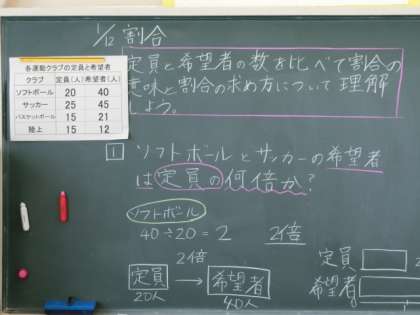 5年生は算数で、「割合」の学習をはじめました。この学習は、算数科の中でも、「なかなかてごわいぞ」と 多くのこどもたちが感じる分野です。 じっくりと学んで欲しいです。 問題が出て、その答えが出る。大切なことは、どうしてその答えになるのかを自分の言葉で語ることができるかどうかです。