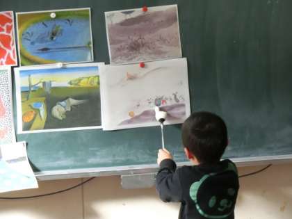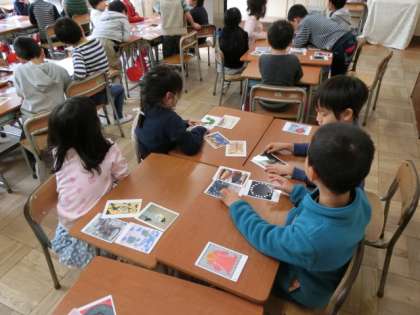 1年生は、図工の時間です。 絵の鑑賞です。 細かいところを見る力をつけています。