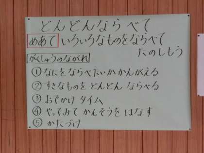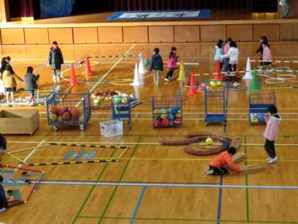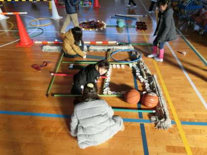 さまざまなものを触ったり、並べたりする中で、自分の思いや発想をふくらませて、それを楽しむ気持ちを育てます。