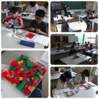 始まりのアクティビティーで楽しく活動した後、今日は「色や形の言い方を覚えたり聞いたりしよう」のめあてで学習していました。