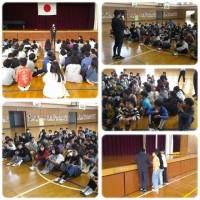 学年写真を中庭で撮りました。