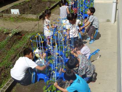 1年生 アサガオを育てています。 しっかりと観察もしていますよ。