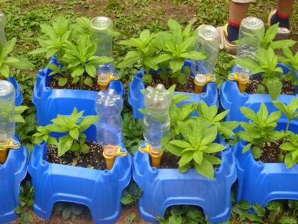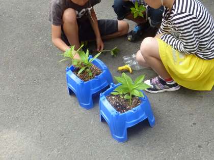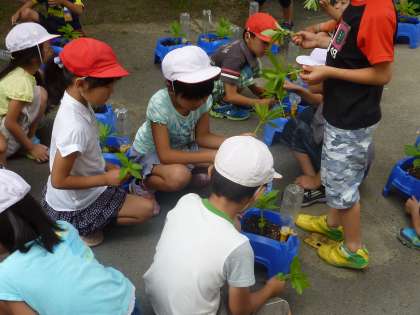 3年生 ホウセンカを育てて、葉・茎・根 の学習をします。今日は、間引き をしていました。