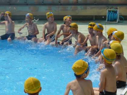 水泳の授業では、慎重にゆっくりと進めていくことが大切です。体調のチェックを常にしながら進めます。