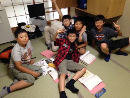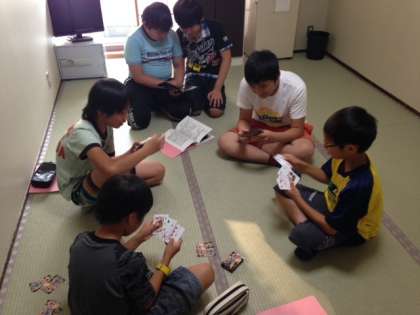 分散学習を終えた班から、学習の振り返り、休憩をしています。もうすぐ夕ご飯ですよ。