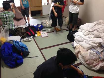 おはようございます。ただ今、布団をたたんだり、荷物の整理をしたり、眠い目をこすりながら、準備中です。