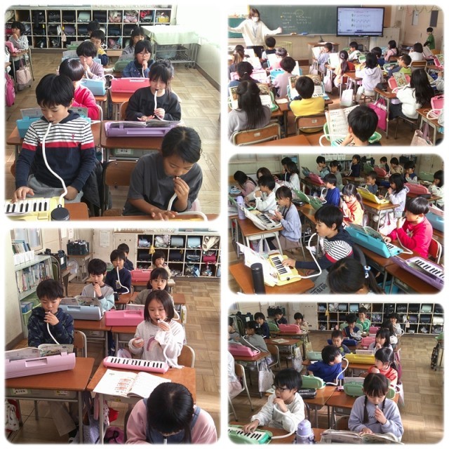 こぎつねの曲をけん盤ハーモニカで演奏しています。