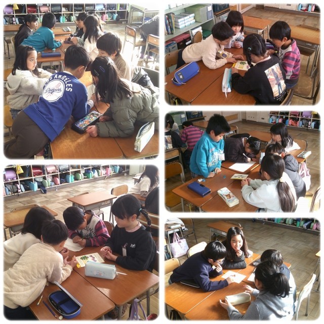 けん盤ハーモニカで、汽車は走るの練習をしています。