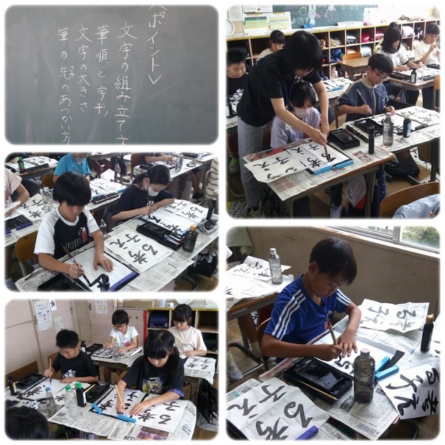 筆順、筆遣い、文字の大きさに気をつけて書きます。