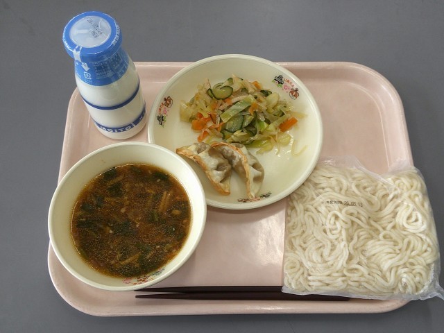 ちゃんぽんめん、牛乳、コーンしゅうまい