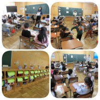 南館3階に「英語ルーム」を開設しました。 掲示物を英語や外国文化などに素敵な環境づくりをしながら整えていきます。 早速、6年生の外国語の授業が行われました。