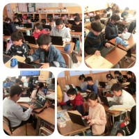 4年生社会の授業では、愛知県の歴史的な災害、水害、台風、豪雨などについて調べてことを共有していました。