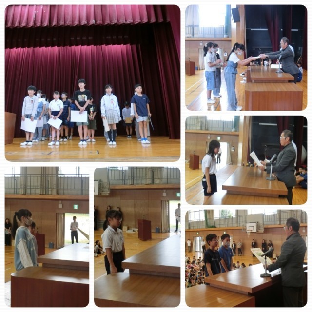今日から新たに2名の新たな先生との出会いの紹介と、これまでの夏休みの応募作品や校外での活動の表彰を行いました。