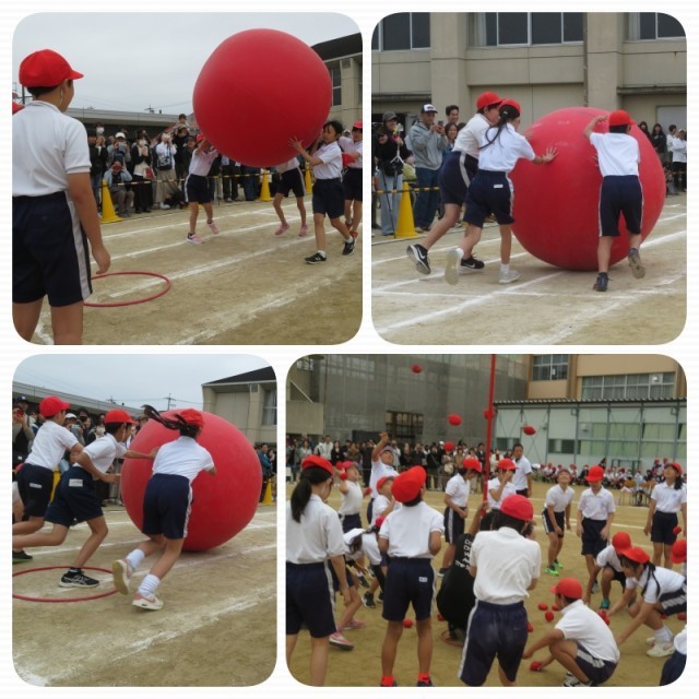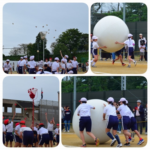 前半大玉転がしと運びを行い、後半玉入れを行う競技です。