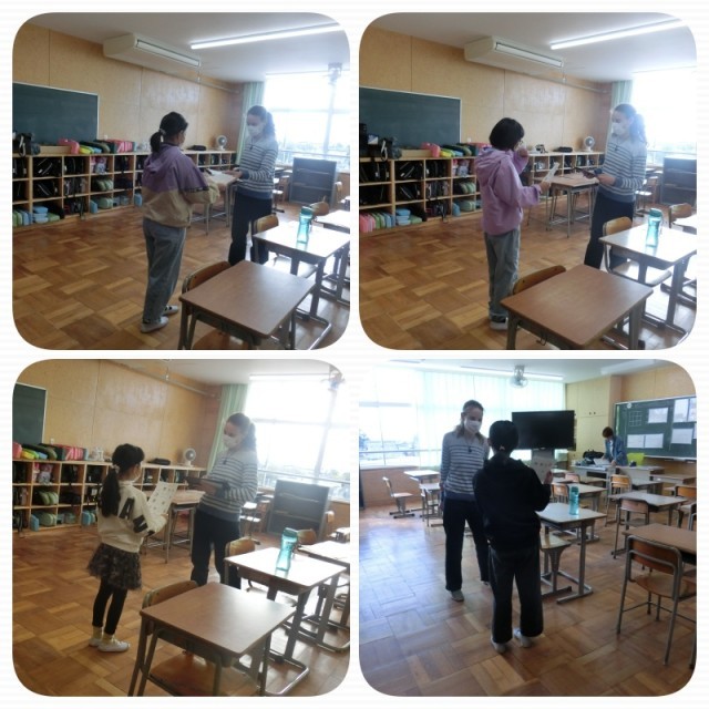 5年生「外国語」の授業で、NETの先生とのスピーキングテストです。