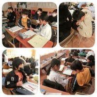 油あげ、ダイコン、ネギの具材を切り分け、湯上がったなべにこれらを入れていく。