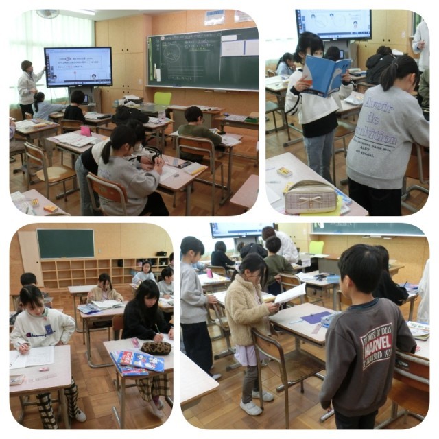 自分の考えと仲間の考えを比べ、解答とよりよいまとめ方を考えていました。