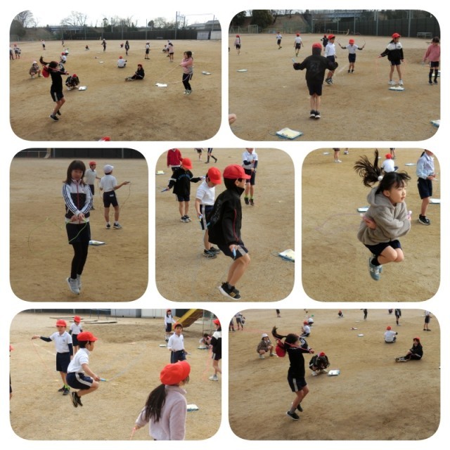 午前中は、日差しもある暖かい中、なわとびに取り組んでいました。