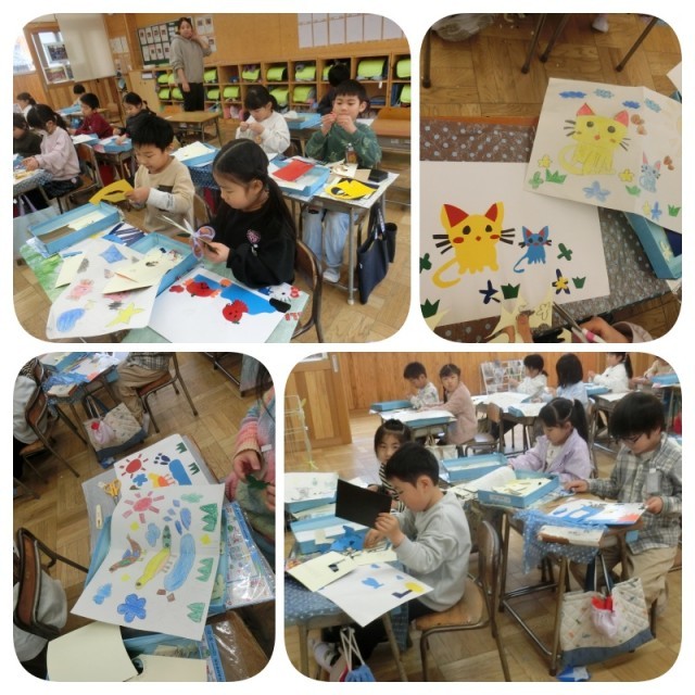 水をつけて、半紙にこするとカラフルな作品が完成します。たのしみですね。
