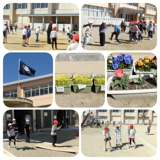 暖かな日、ドッジボール、大なわとび、竹馬、一輪車など、