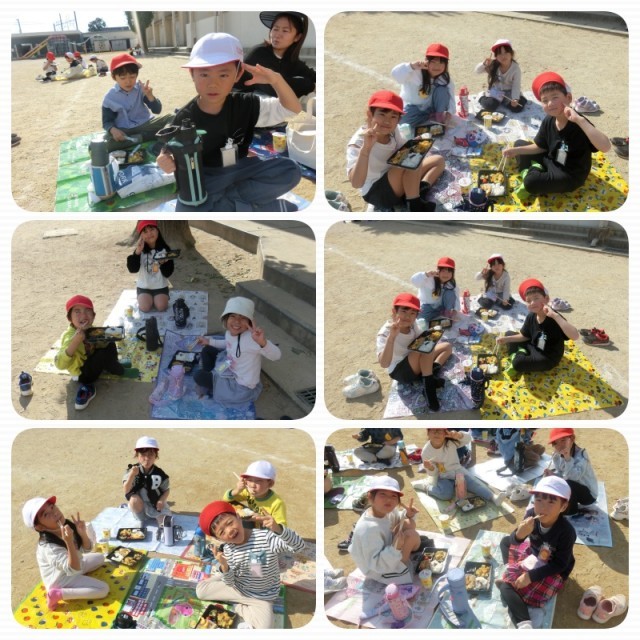 今日も雲一つない青空の下、仲のよい仲間とおいしい給食を一緒に食べました。