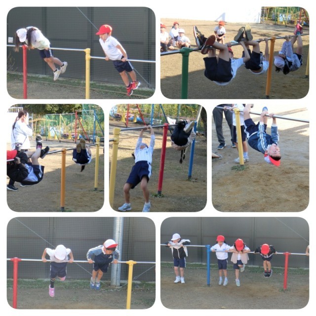 穏やかで暖かい日。鉄棒のぶら下がりをしていました。
