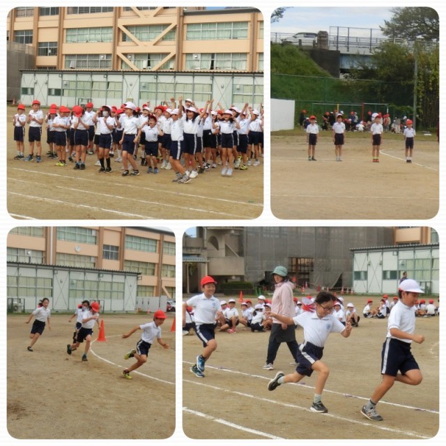運動場で元気よく