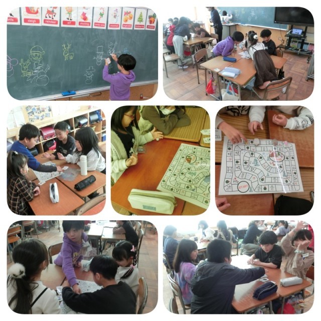 クリスマスを間近に、外国語活動のすごろくゲームの様子です。