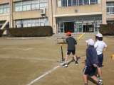 4時間目、5年2組は、運動場で体育の授業でした。 男女合同で2か所に分かれ、...