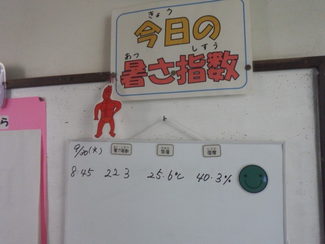 「注意」秋晴れで清々しい午前中です。引き続き、暑さ指数(WBGT)を確認しながら活動をしていきます。