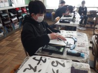 5年生 図画工作「テープカッター作り」木工作業に一生懸命取り組んでいます。素敵なデザインをまとったオリジナルテープカッターが出来上がります。