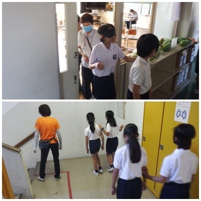 本日は、地域より22名の方をお招きし、2・3時間目に福祉実践教室を行っています。講座は「手話」、「要約筆記」、「点字」、「視覚障害者ガイドヘルプ」の4講座です。福祉に携わる講師の方と交流することで、ともに助け合って生きようとする心を育てることをねらいとしています。体験を通して、福祉についての理解を深めていきます。