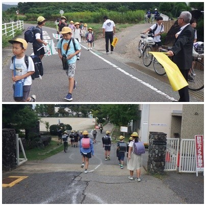 おはようございます。今日も元気に児童が登校しました。地域の皆さま、保護者の皆さま、日々見守り活動ありがとうございます。また、送り迎えの際、岩田グランドをご活用いただきありがとうございます。体育館周辺、正門周辺、路上への駐車はご遠慮ください。