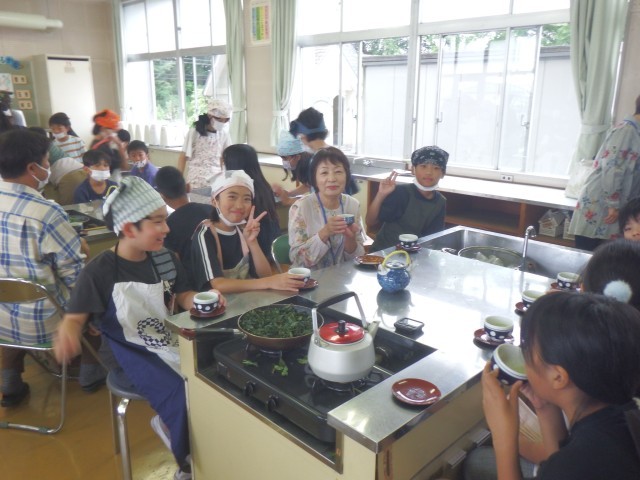 自分たちで葉から作ったお茶をいただきます!お世話になっている地域の方達を囲んで笑顔でいただきます♪おいしくいただいております。
