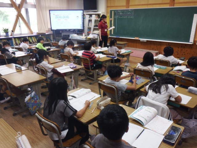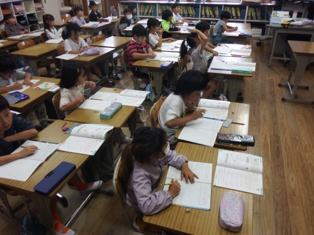 2年生 算数「ばいのかず」何ばいになるかを考えて、かけ算の式で求める練習をしました。